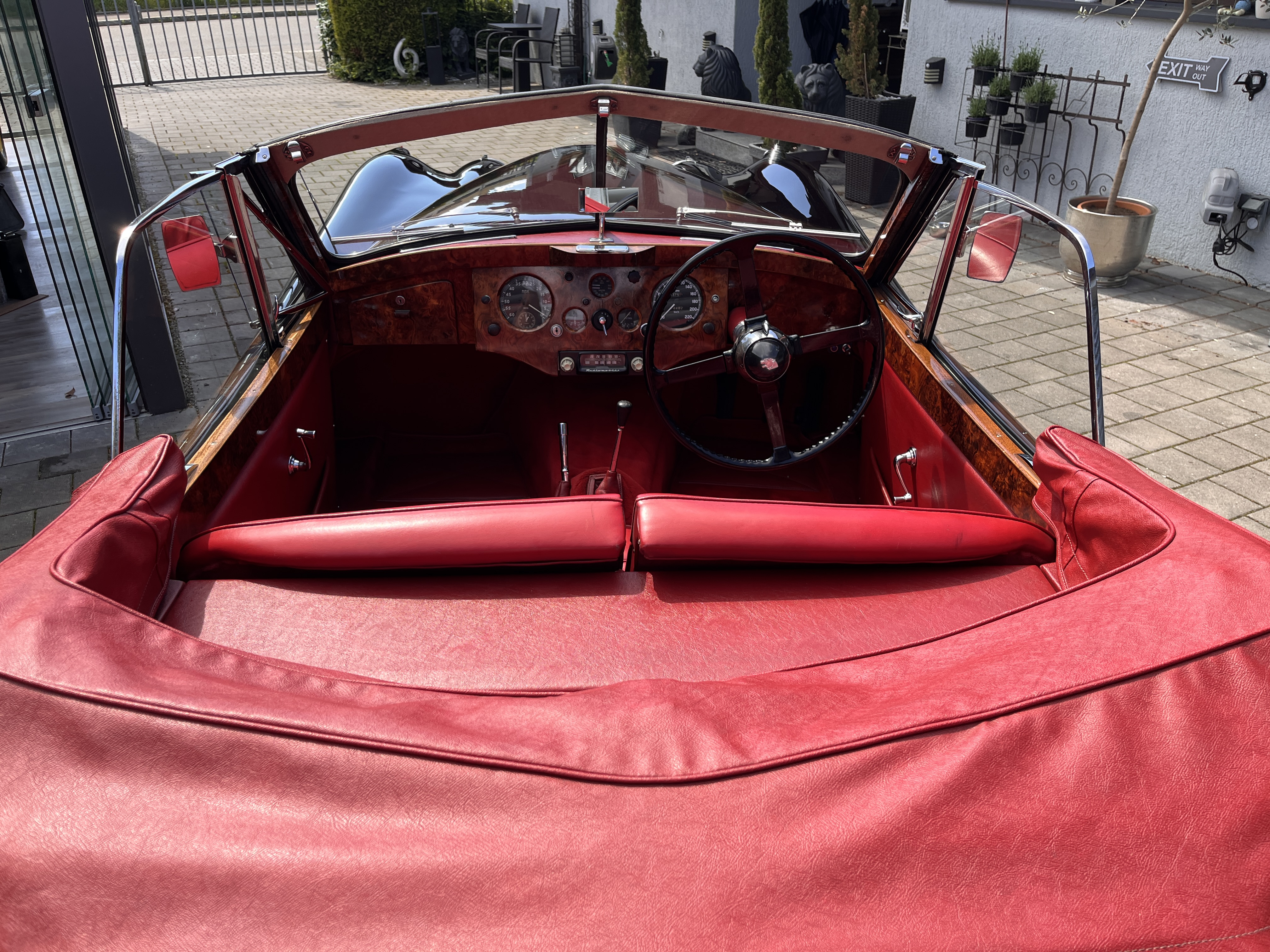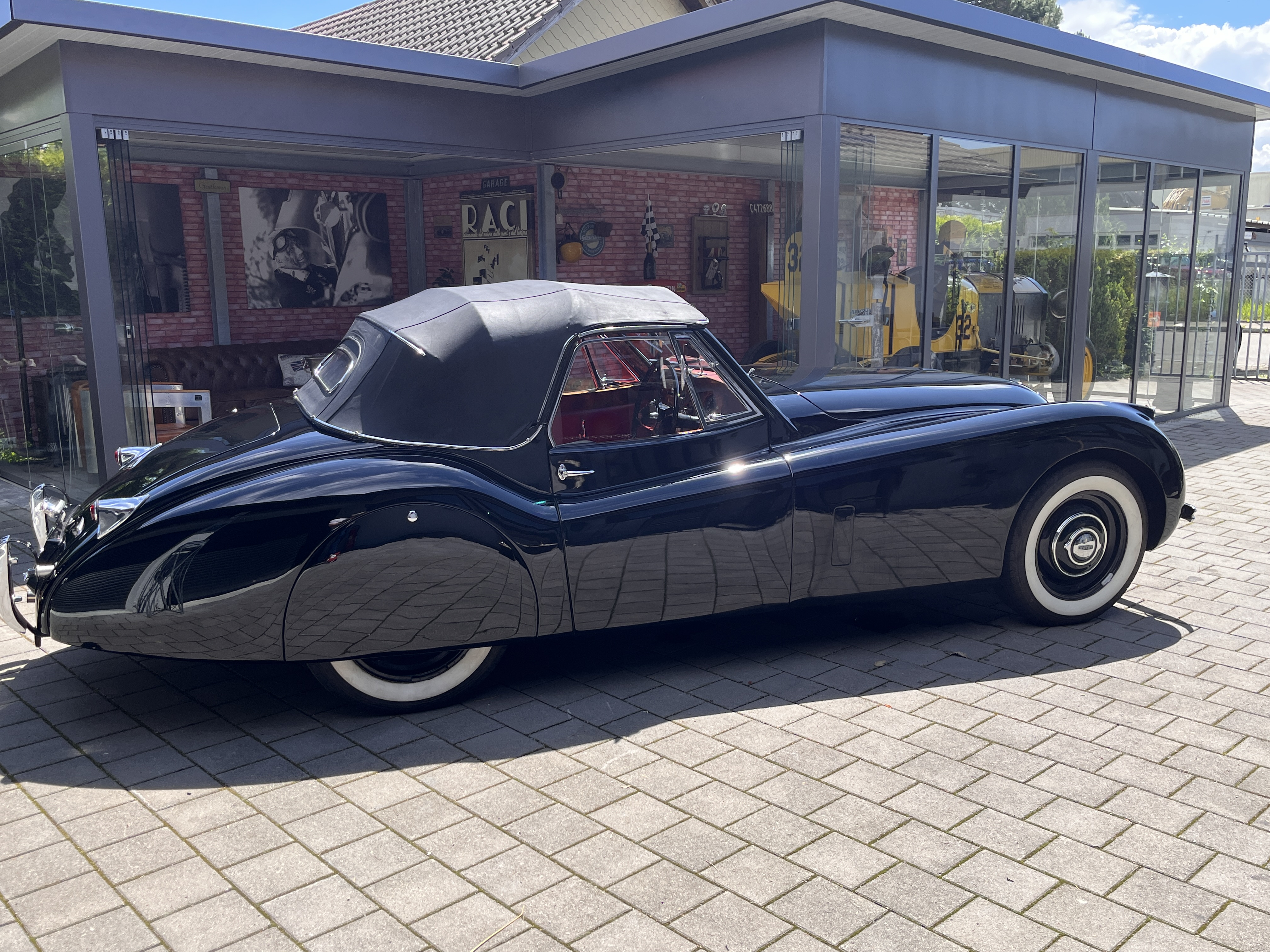 Sehr schöner und restaurierter Jaguar XK 120 in klassischer Farbkombination Glanzschwarz-Bordeaux, ...In den Jaguar XK 120 wurde der erste Jaguar-Motor mit zwei obenliegenden Nockenwellen eingebaut, womit dieses Fzg. eine Höchstgeschwindigkeit von 200Km/h erreicht. Der XK 120 besticht durch seine elegante, ästhetische Form und zählt sich somit zu den Favoriten, bei Veranstaltungen und Liebhabern. Eine umfangreiche Dokumentation ist vorhanden. Schweizer CH-Veteranen-und Deutsche Zulassung vorhanden, sowie der orig. erste Brith.Fzg.Brief. Ebenfalls ist ein original-Productions Record Trace Certificate von Jaguar vorhanden. Der Motor wurde komplett revidiert im Zuge der Voll-Restauration. Das Fahrzeug befindet sich in einem außergewöhnlichst schönem Zustand und ist sofort einsatzbereit. GERNE AUCH INZAHLUNGNAHME-UND EINTAUSCH-MÖGLICH Irrtümer und Zwischenverkauf vorbehalten Für eventuelle Tippfehler oder Inseratsfehler keine Haftung! Die Fahrzeugbeschreibung dient lediglich der allgemeinen Identifizierung des Fahrzeuges und stellt keine Gewährleistung im kaufrechtlichen Sinne dar. Die Angaben erheben nicht den Anspruch auf Vollständigkeit. Die gemachten Angaben, Beschreibungen und Bilder sind unverbindlich und dienen nicht als zugesicherte Eigenschaften. Der Verkäufer übernimmt keine Haftung/ Gewährleistung für Tipp- und Datenübermittlungsfehler. Ausstattungen sind ggf. gesondert und vor Ort zu prüfen.